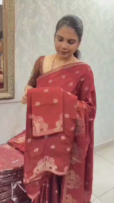 Khadi Silk Saree With Elephant Motifs | TTDS2542