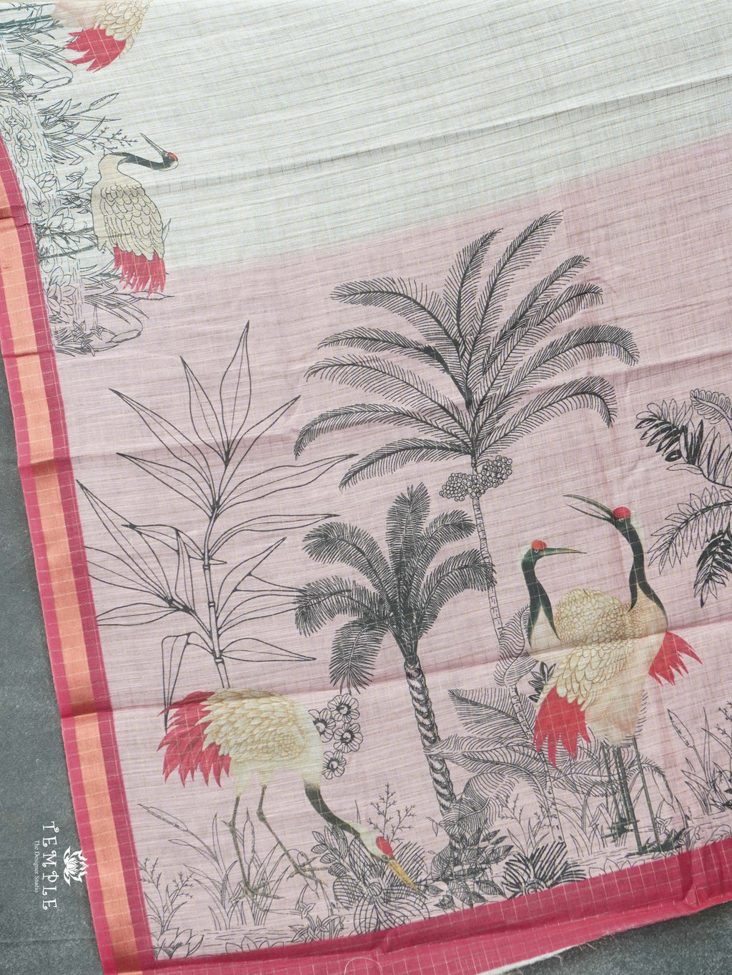 Work - Light Weight and easy to wear Chanderi Cotton Saree. Adorned with Checked Pattern all over the body. Attached With Contrast Blouse.