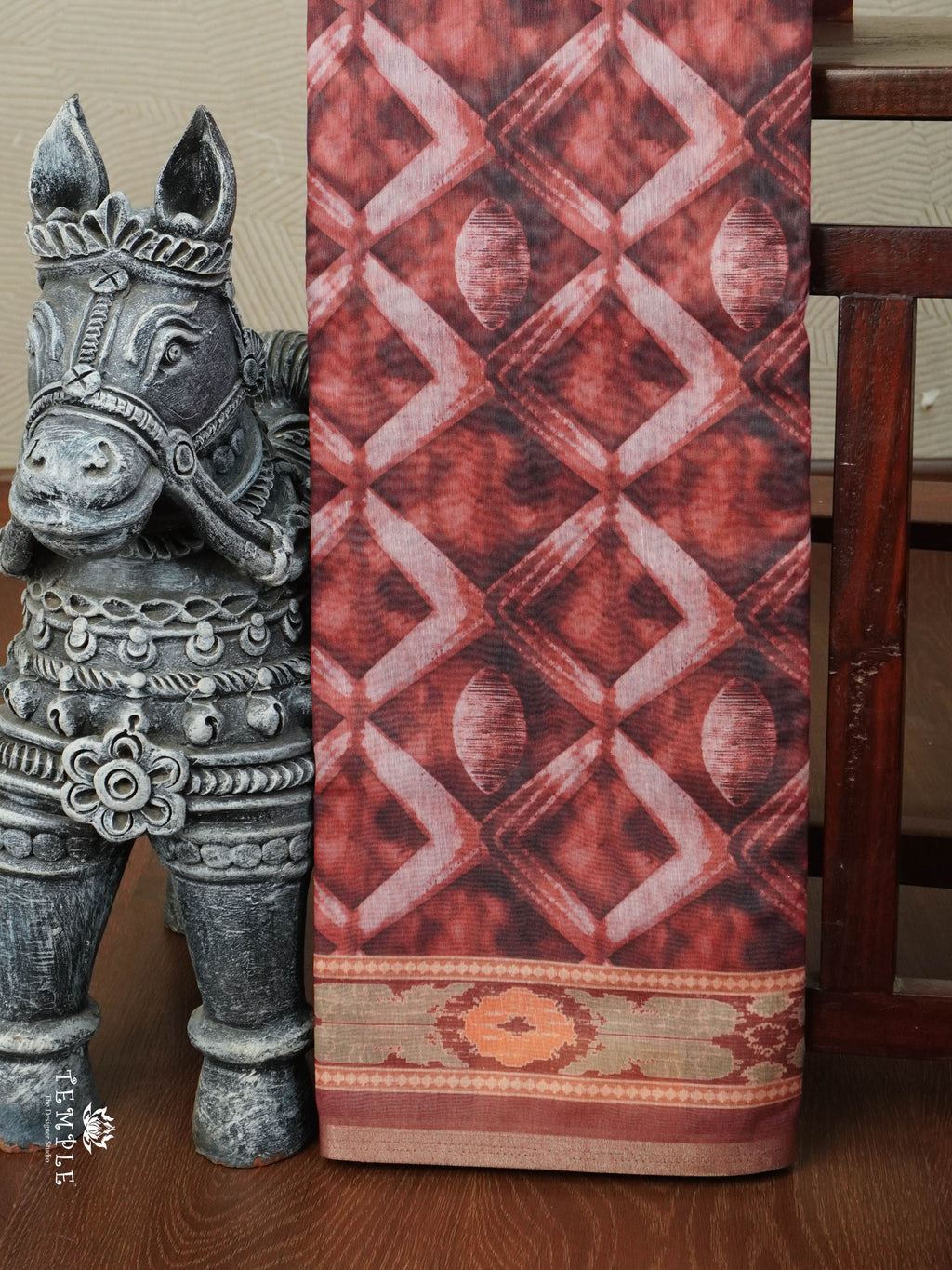 Work - Explore Beautiful Collection of Chanderi Cotton Saree with Zig-Zag Design all over the body. Attached with Printed Blouse.
