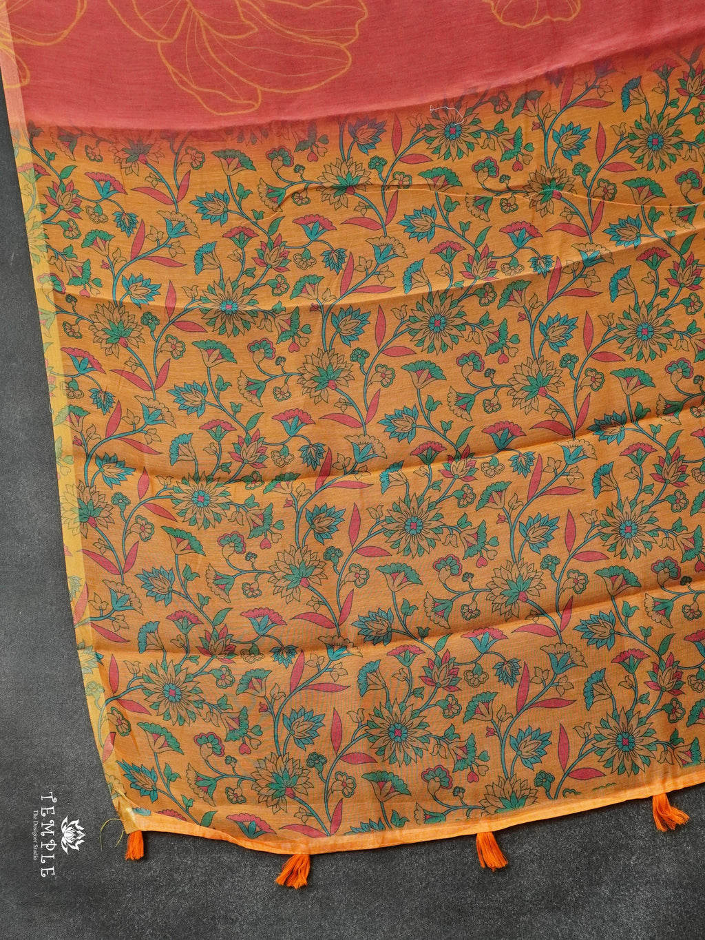 Work - Light Weight and easy to wear Chanderi Cotton Saree. Adorned with beautiful prints all over the body. Attached With Printed Blouse.