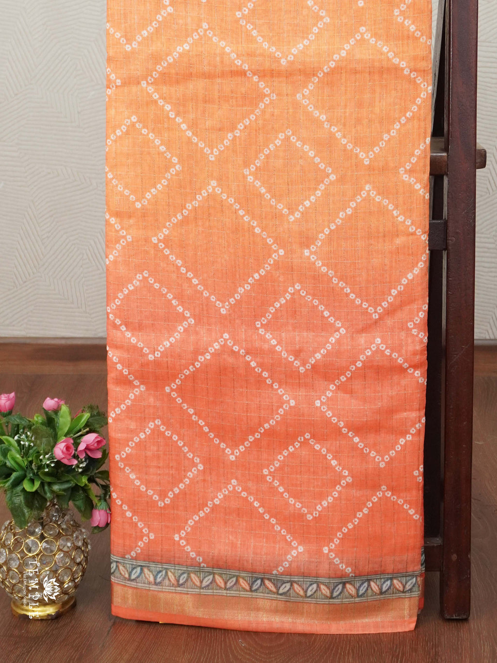 Work - Light Weight and easy to wear Chanderi Cotton Saree. Adorned with Leheriya Patterns all over the body. Attached With Printed Blouse.
