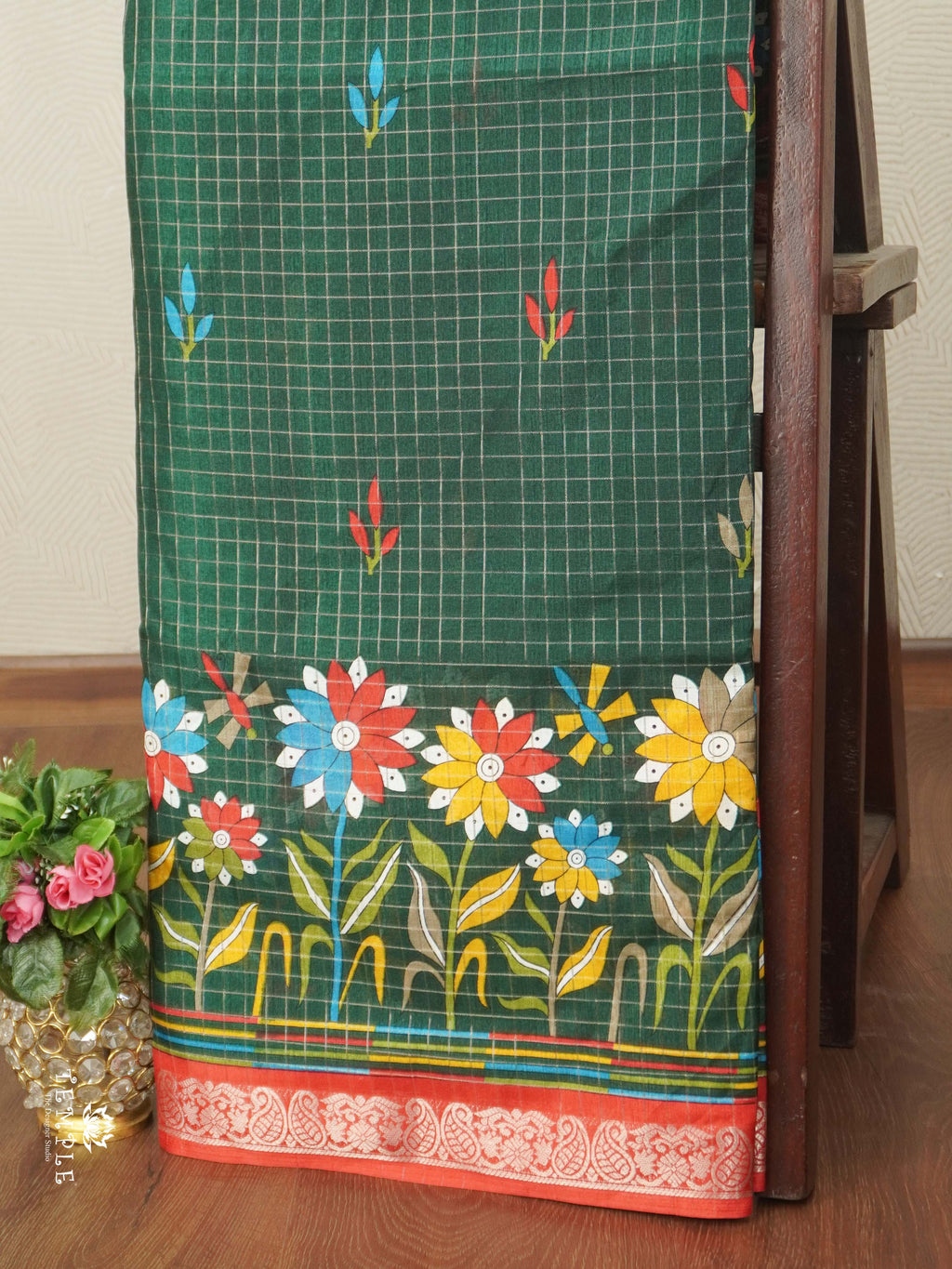 Work - Attractive Checked Pattern Saree. Adorned with beautiful Checked Pattern all over the Body. Attached with printed Blouse.