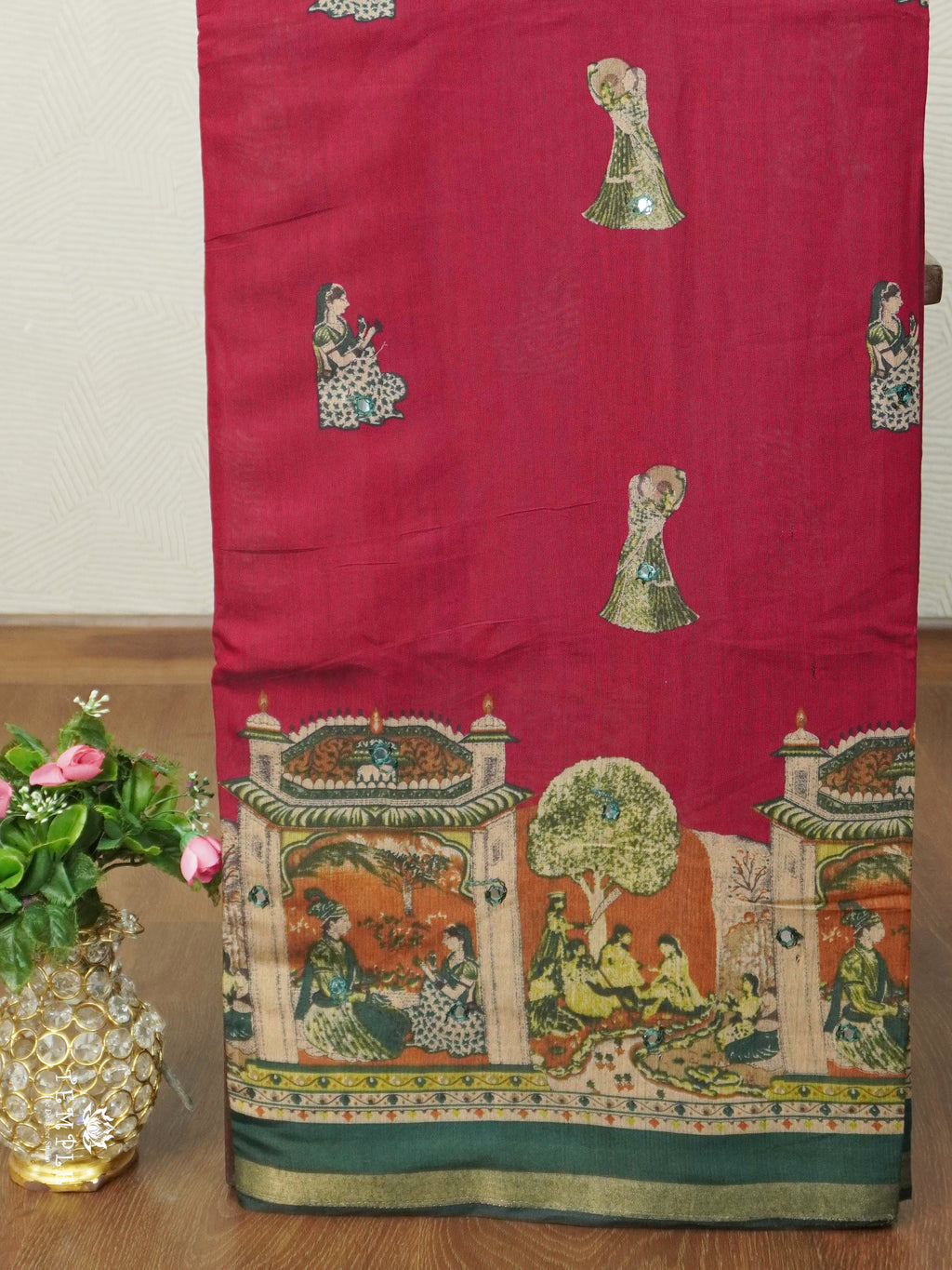 Saree Material - Mangalagiri Cotton Saree with Mirror Work