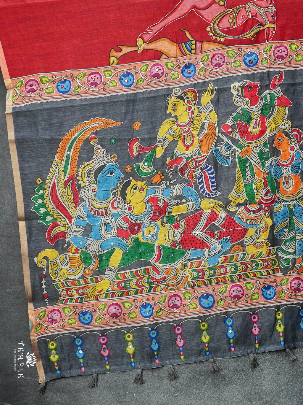 Work - Light Weight and easy to wear Linen Cotton Saree. Adorned with Deer Patterns all over the body. Attached With Contrast Blouse.