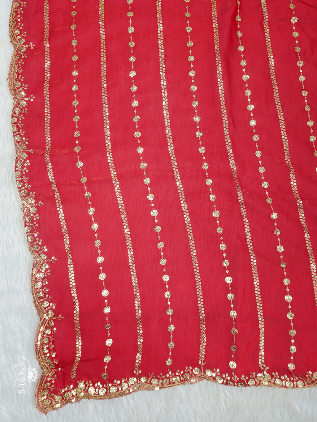 Work - Grace your wardrobe with timeless elegance in this stunning Designer saree. Adorned with delicate vertical golden zari and sequin embroidery, this saree captures the charm of traditional craftsmanship with a modern twist.