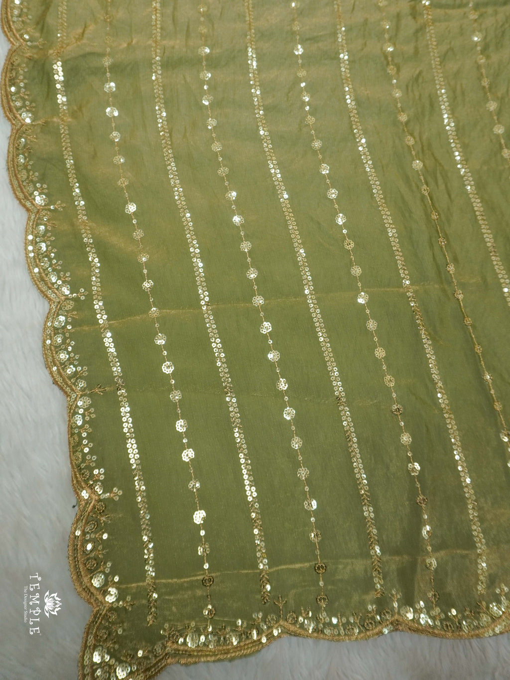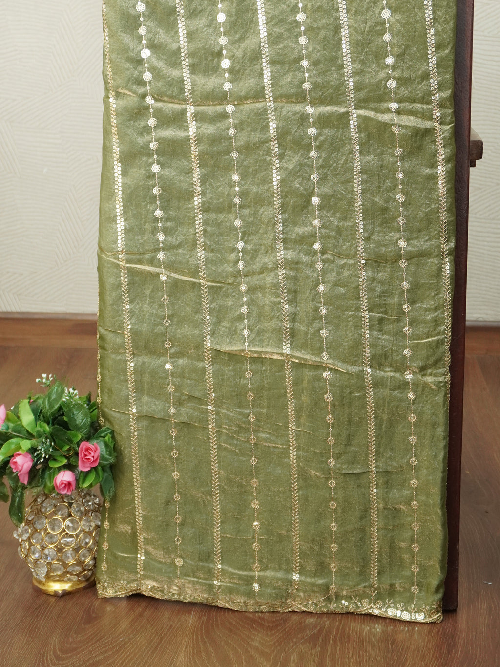 Work - Grace your wardrobe with timeless elegance in this stunning Designer saree. Adorned with delicate vertical golden zari and sequin embroidery, this saree captures the charm of traditional craftsmanship with a modern twist.