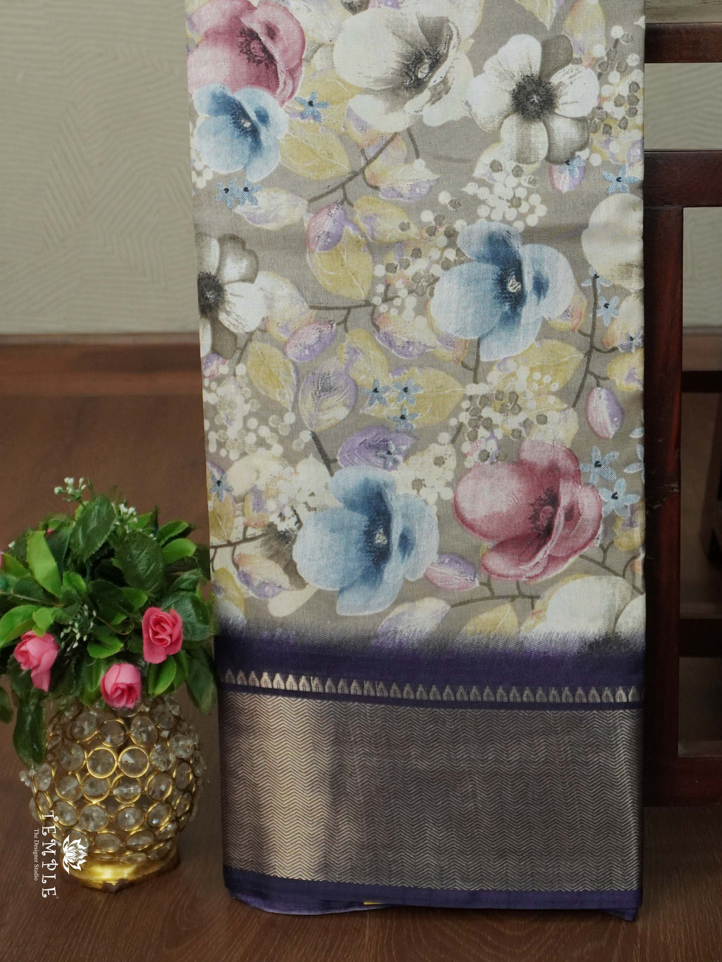 Work - Attractive Dola silk saree. Fancy Design and Banarasi Zari border. Paired with printed blouse.