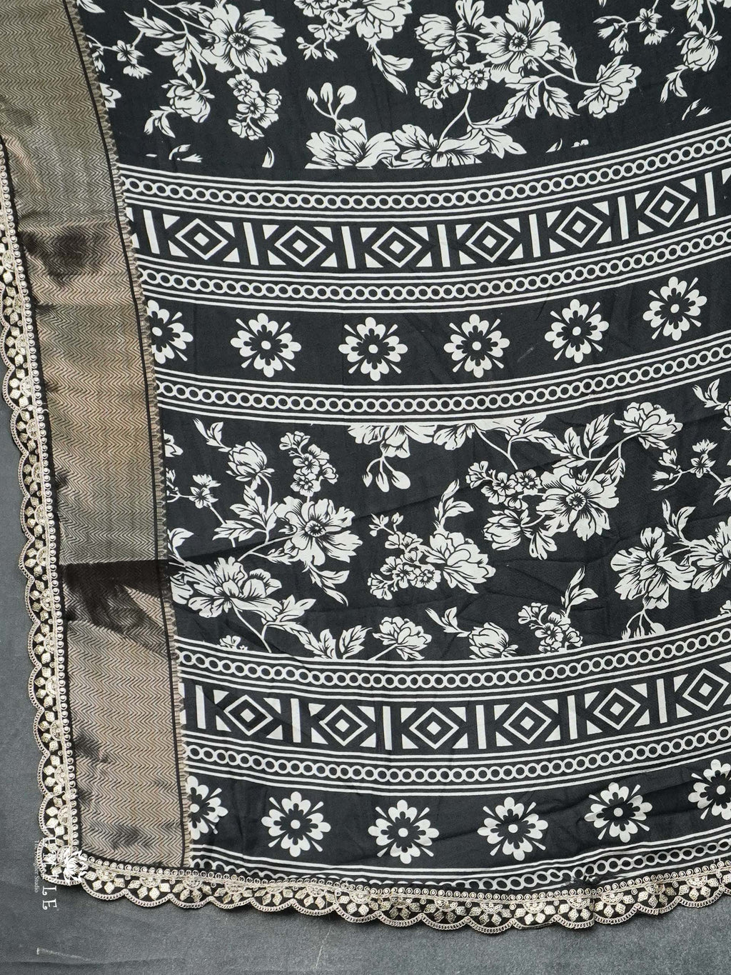 Work - Attractive Dola Silk Saree. Adorned With Beautiful Prints all over the body and have Scollop Borcer. Paired With Plain Blouse.