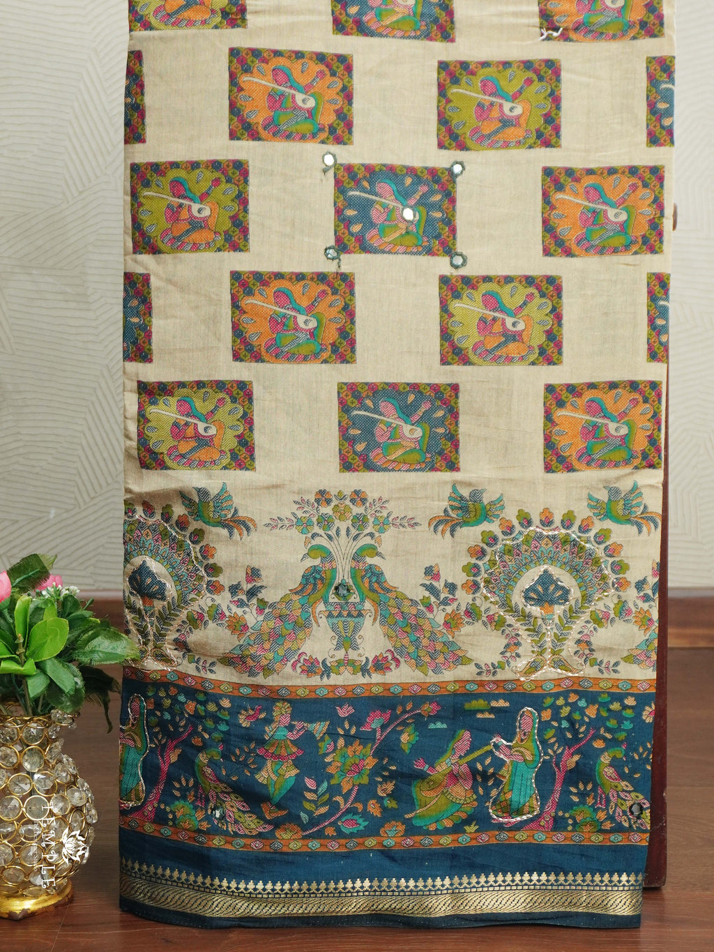Saree Material - Fancy Cotton Saree With Mirror Work