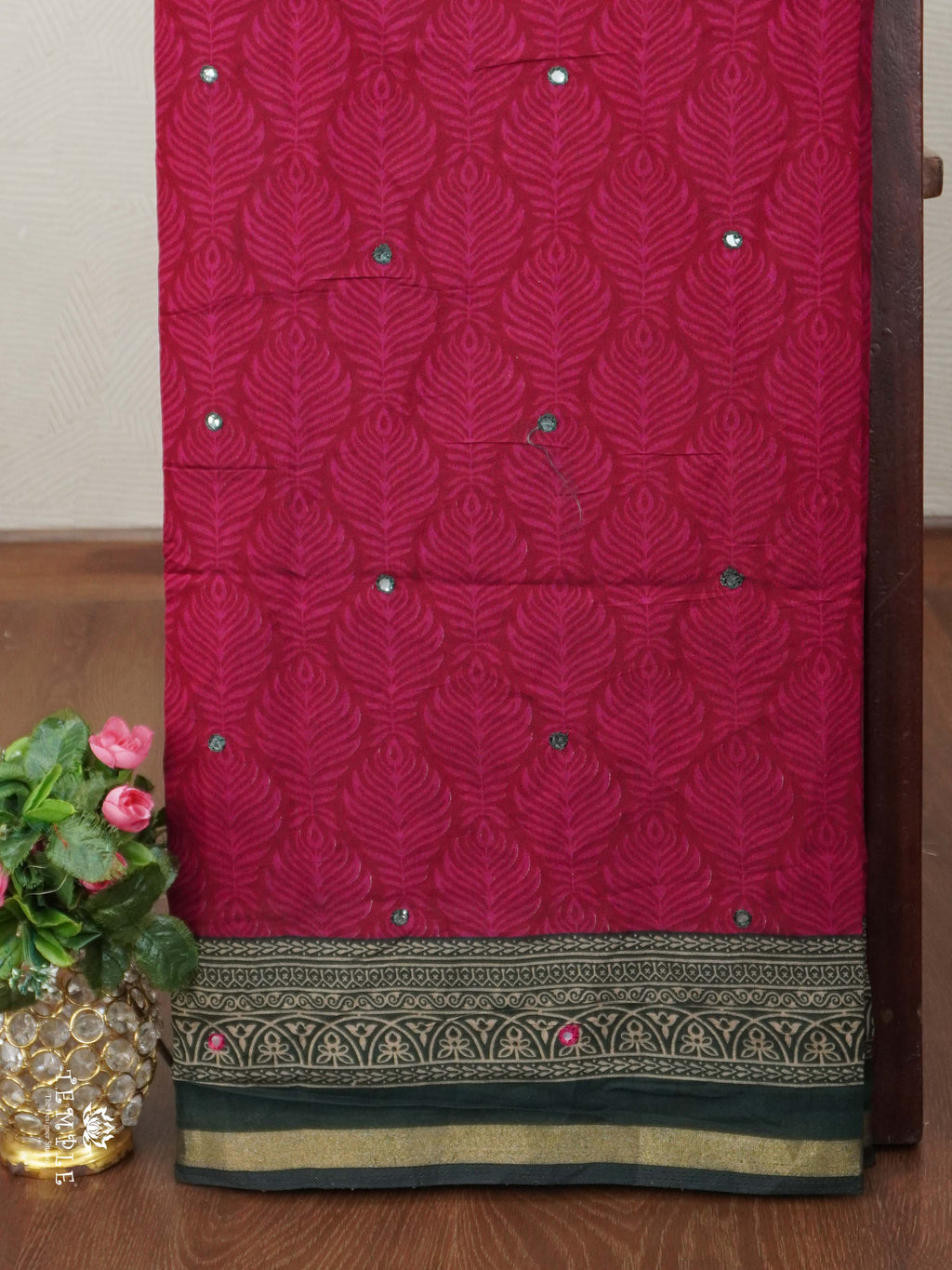 Work - Attractive Fancy Cotton Saree. Adorned with beautiful prints and Mirror Work all over the Body. Attached with printed Blouse.