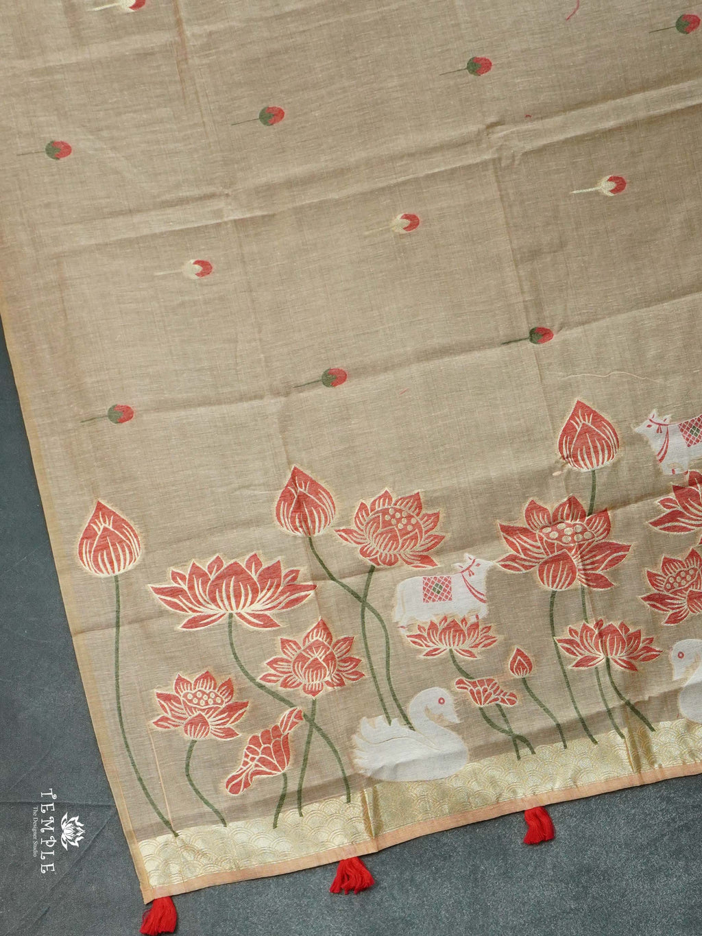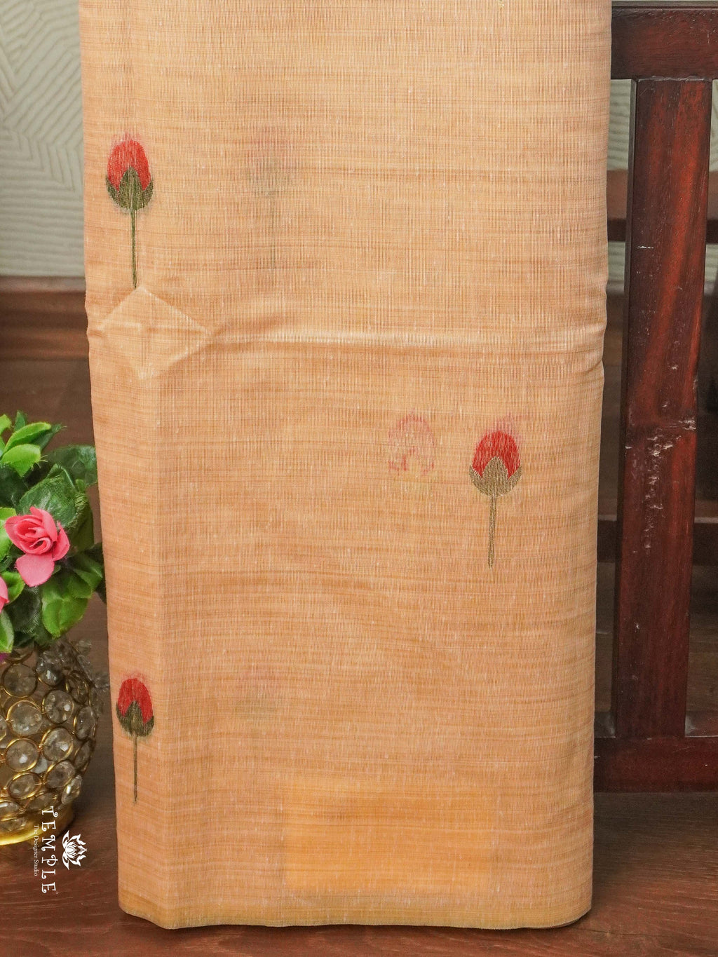 Work - Attractive Ghicha Cotton Saree . Adorned with Thread Woven floral Patterns all over the Body. Attached with Contrast Blouse.