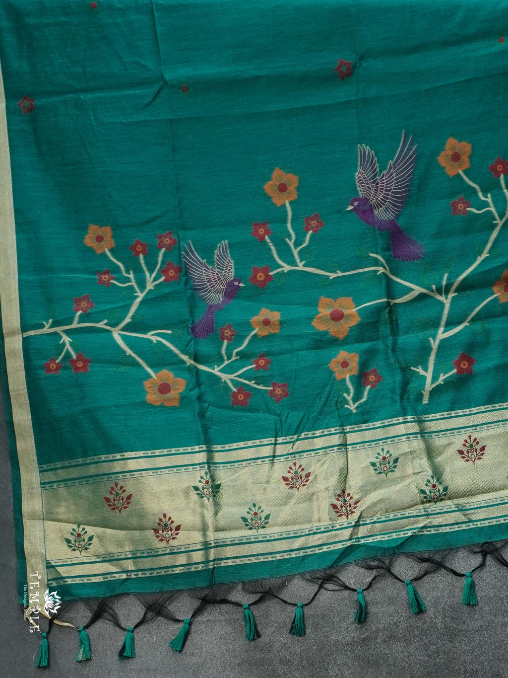 Work - Attractive Jamdhani Silk Cotton Saree. Adorned with Thread Woven floral patterns all over the Body. Attached with Contrast Blouse.