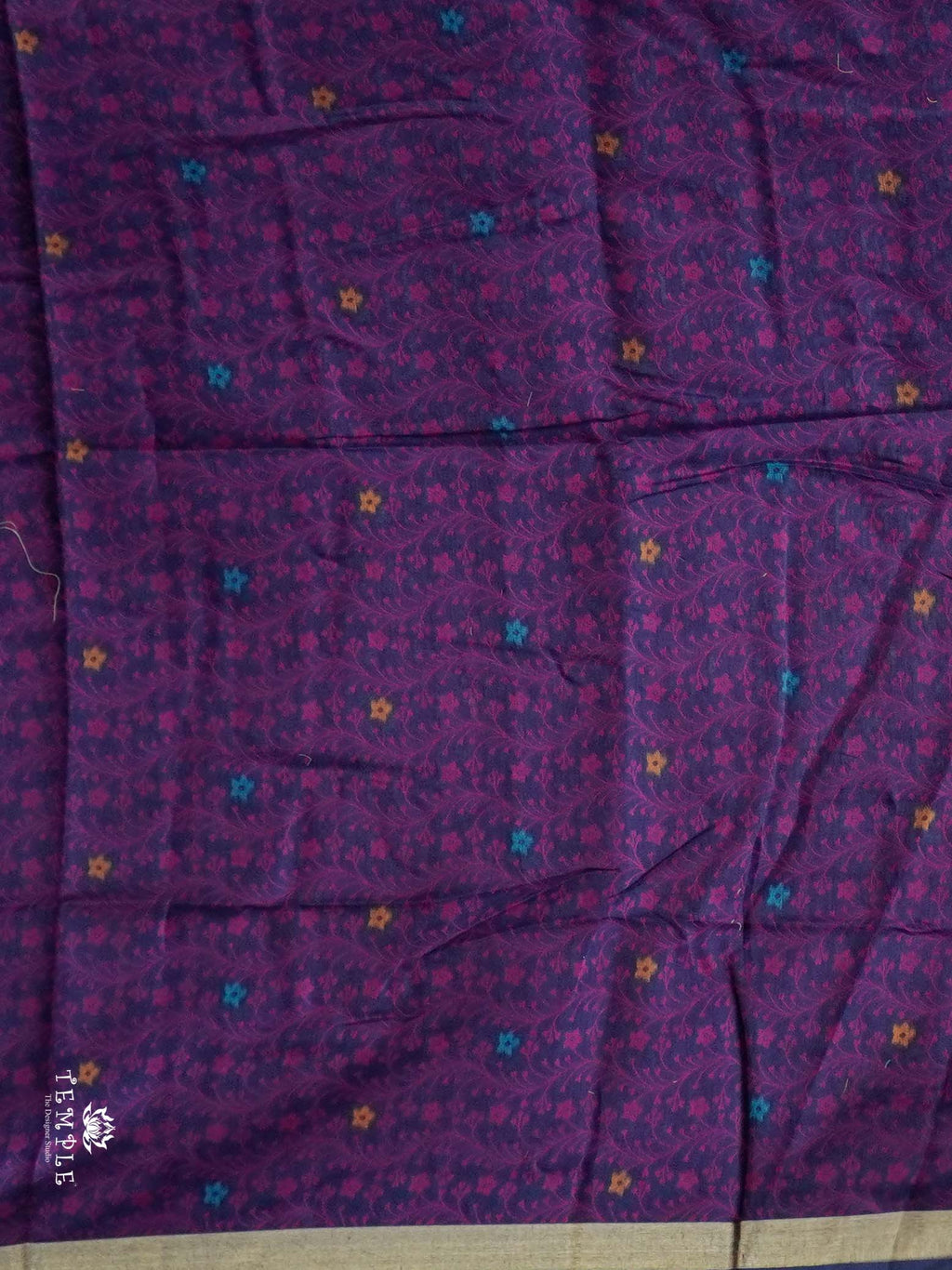 Work - Attractive Jamdhani Silk Cotton Saree. Adorned with Thread Woven floral patterns all over the Body. Attached with Contrast Blouse.