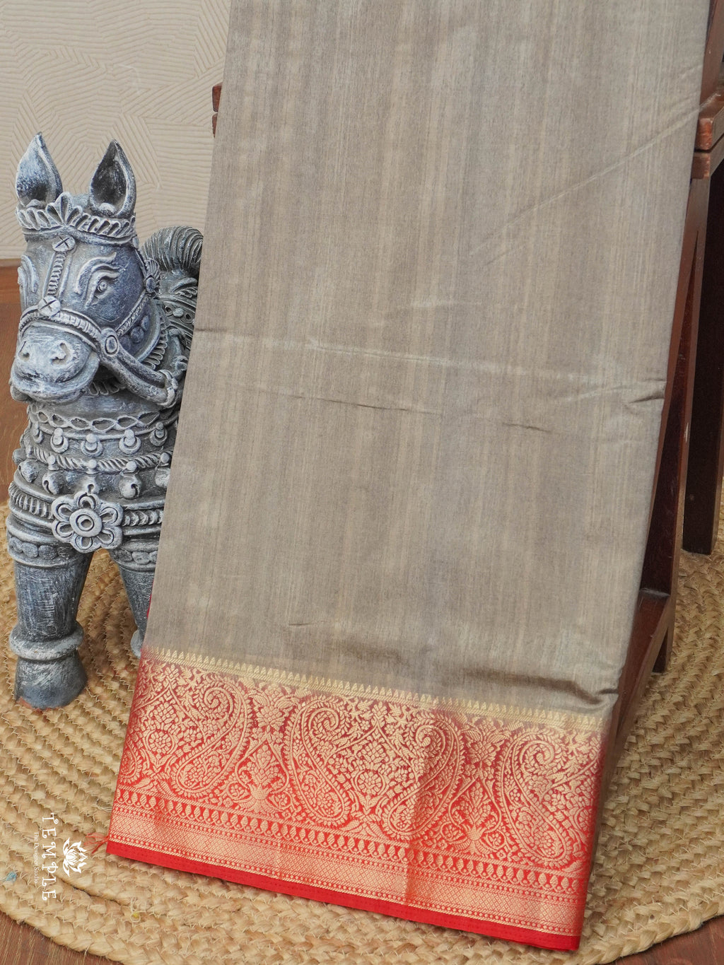 Work - Light Weight and easy to wear Jute Silk Saree. Adorned with beautiful Patterns all over the body. Attached With Contrast Blouse.