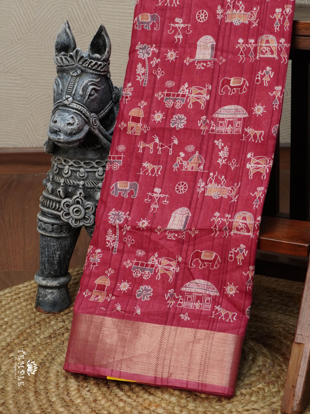 Work - Explore Beautiful Collection of Kadhi Cotton Saree with Warli Prints. Attached with Self colour Blouse.