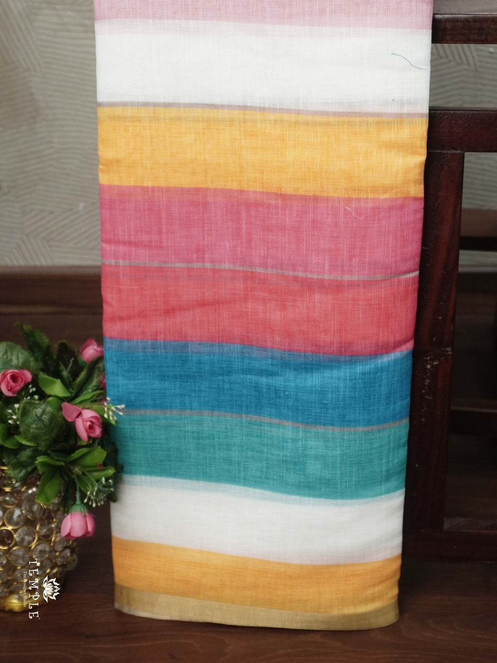 Work - Explore beautiful Collection of Linen Cotton Saree. Adorned with sTRIPES prints all over the body. Attached with Plain Blouse.