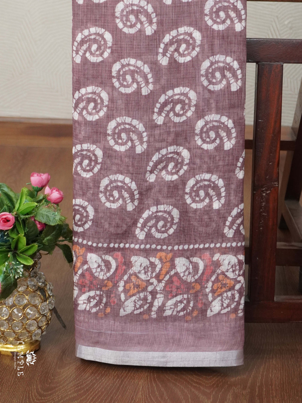 Work - Attractive Linen Cotton Saree. Adorned with beautiful prints all over the Body. Attached with printed Blouse.