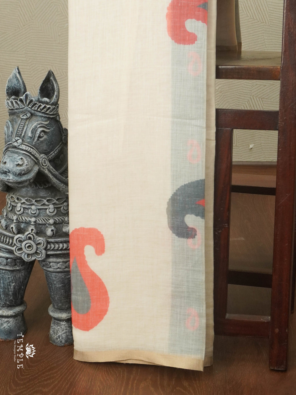 Work - This Linen cotton saree features Peacock Pattern all over the body, inspired by traditional folk art. Attached with Printed Blouse.