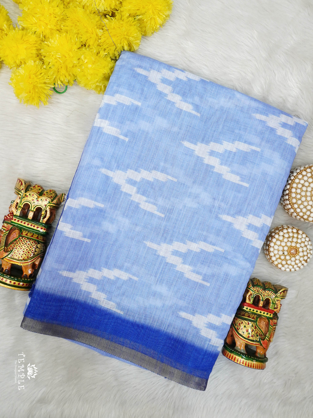 Work - Light Weight and easy to wear Linen Cotton Saree. Adorned with Beautiful prints all over the body and Zari border. Attached With Printed Pallu and Blouse.
