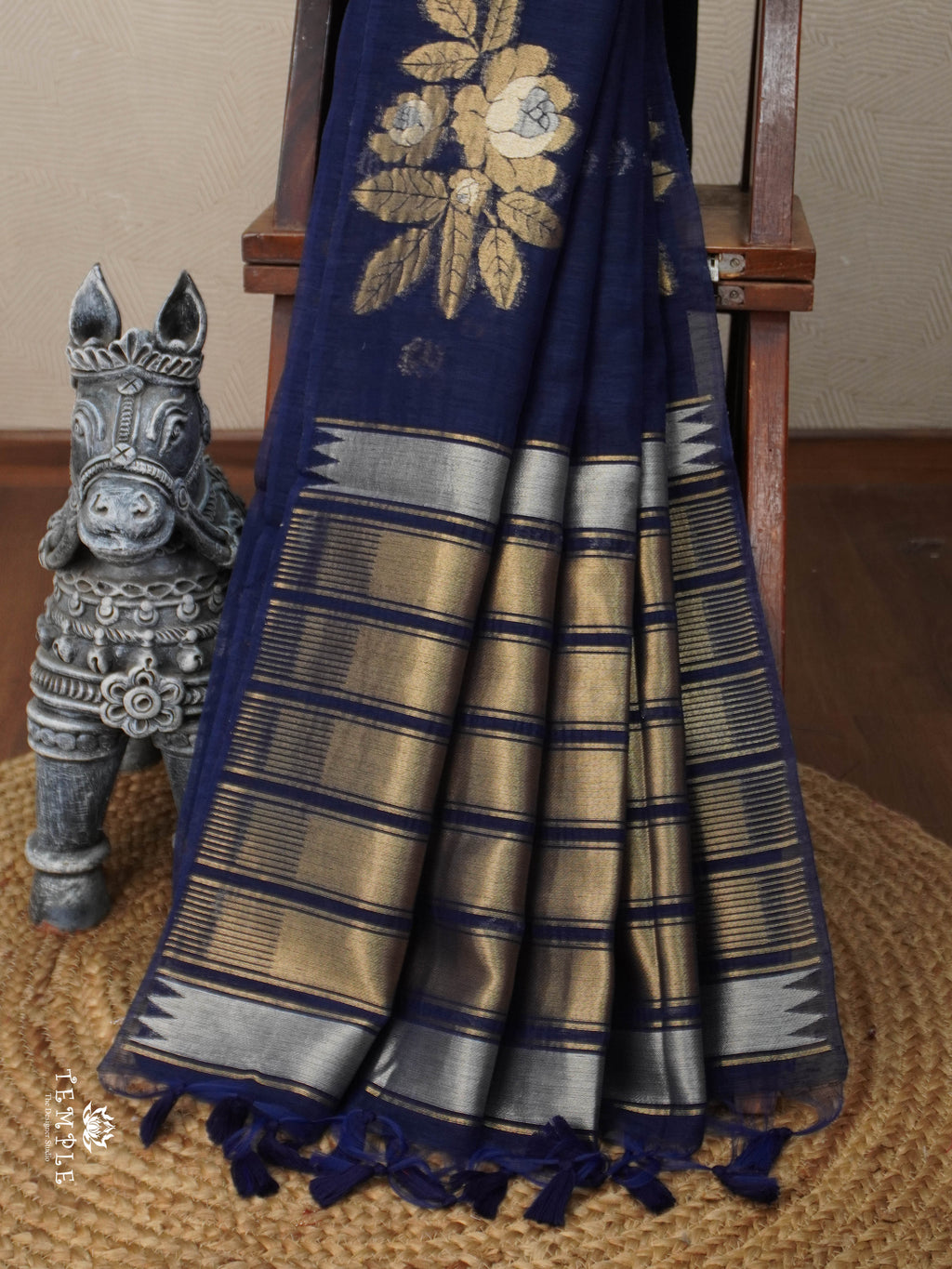 Work - Attractive Linen Silk Saree. Adorned With Beautiful Floral zari woven pattern all over the body. Paired With zari woven pattern Blouse.