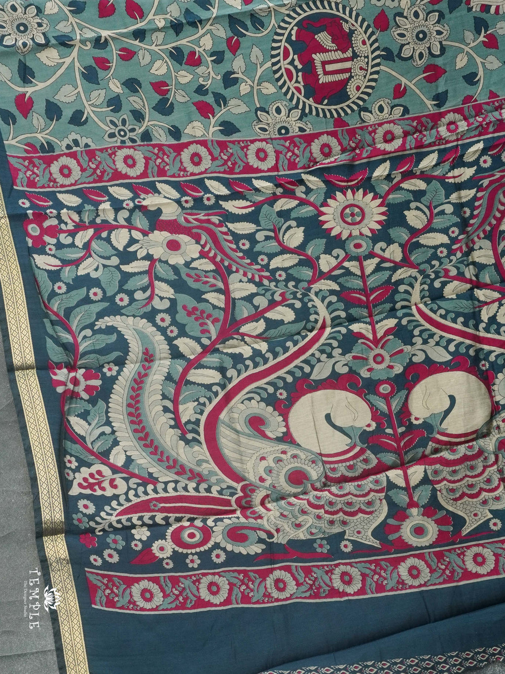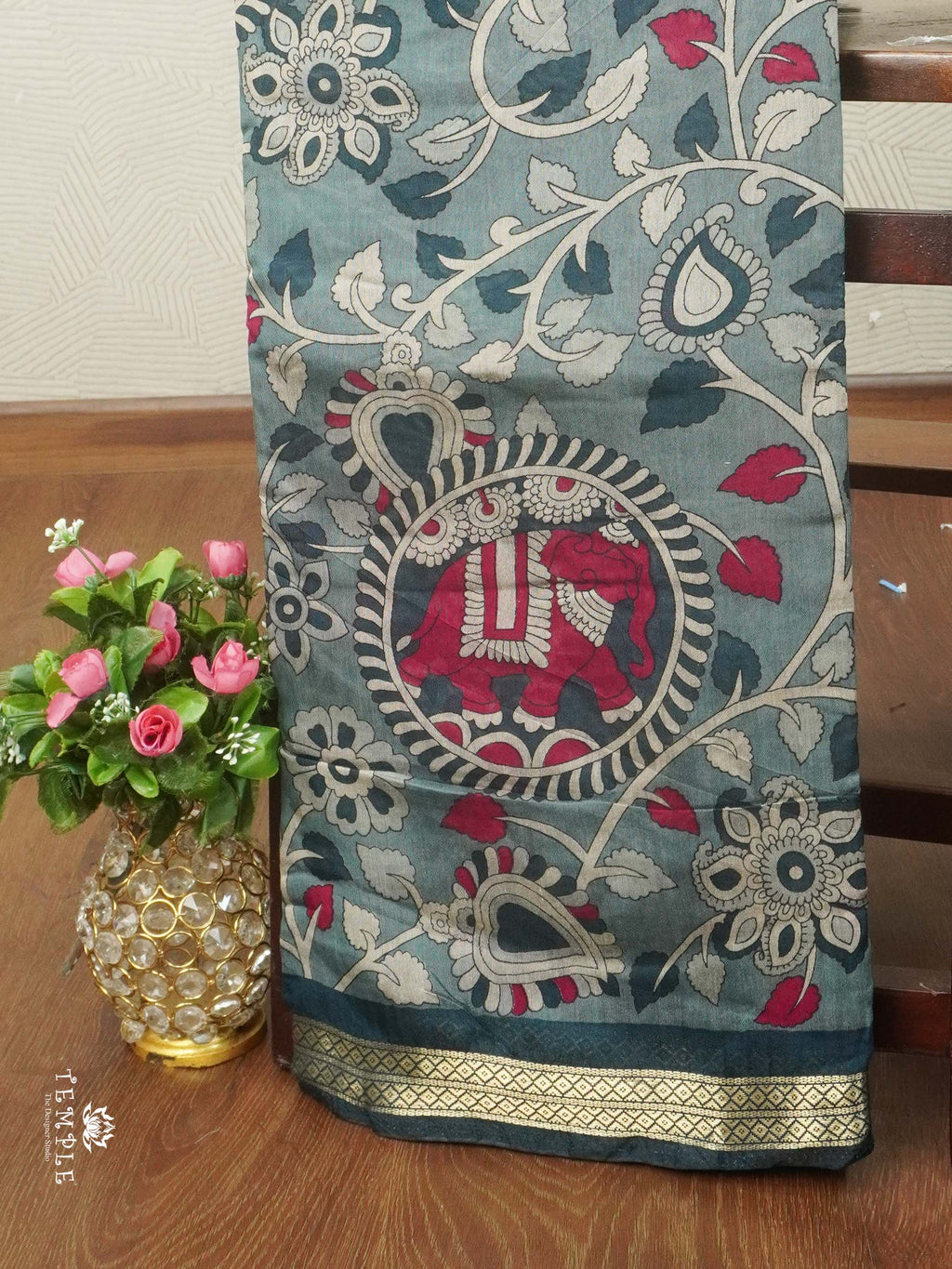 Work - Attractive Mangalagiri Cotton Saree. Adorned with beautiful Floral and Elephant prints all over the Body. Attached with printed Blouse.