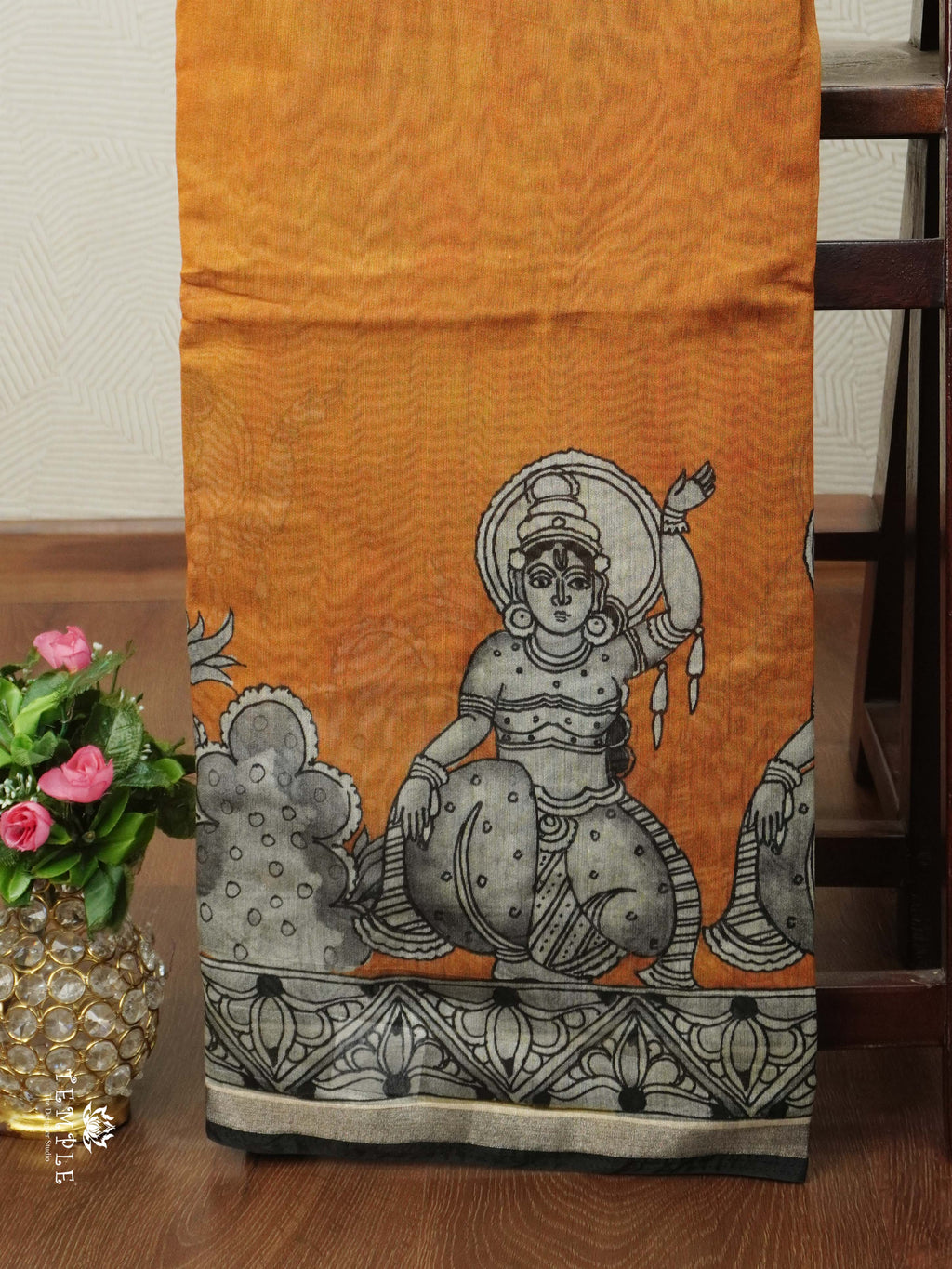 Work - Attractive Mangalagiri Cotton Saree. Adorned with beautiful Floral prints all over the Body. Attached with printed Blouse.