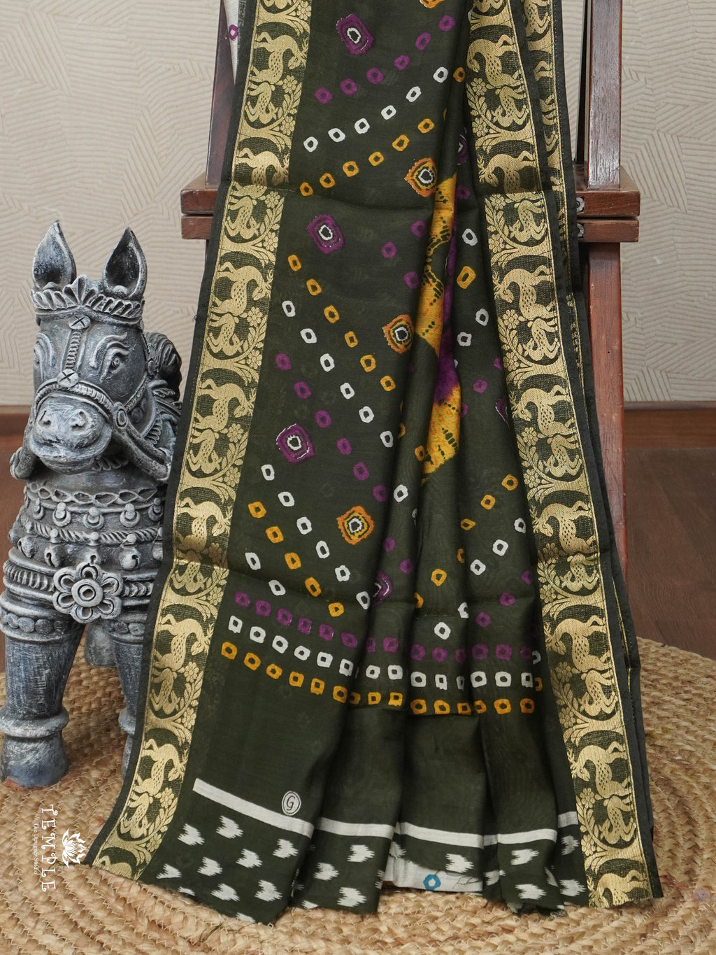 Work - Attractive Mangalagiri Cotton Saree. Adorned with beautiful prints all over the Body. Attached with Contrast Blouse.