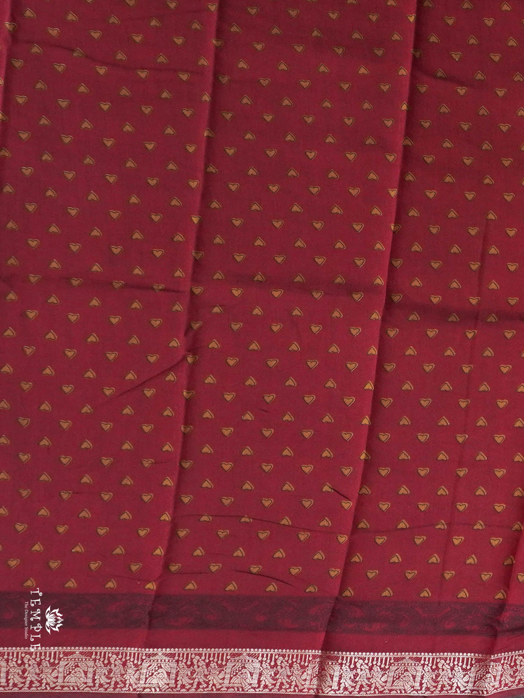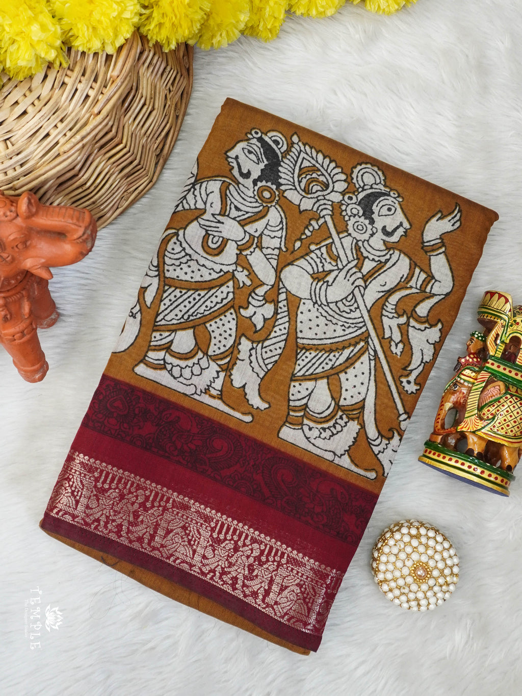 Work - Attractive Mangalagiri Cotton Saree. Adorned with beautiful prints all over the Body. Attached with Contrast Blouse.