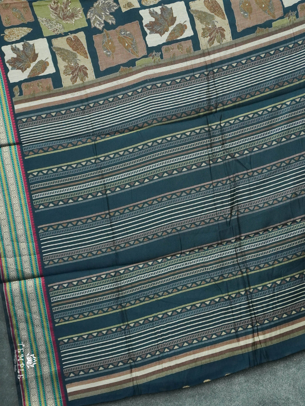 Work - Attractive Mangalagiri Cotton Saree. Adorned with beautiful Prints all over the Body and have a Kalamkari Pallu. Attached with printed Blouse.