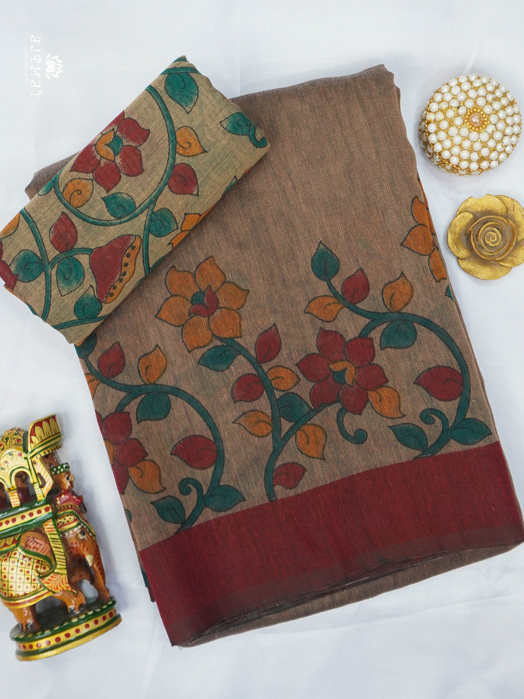 Work -Lightweight and easy to wear, this Mul Mul cotton saree offers exceptional comfort for everyday use. It comes paired with a beautifully printed Kalamkari blouse, adding a graceful traditional touch.
