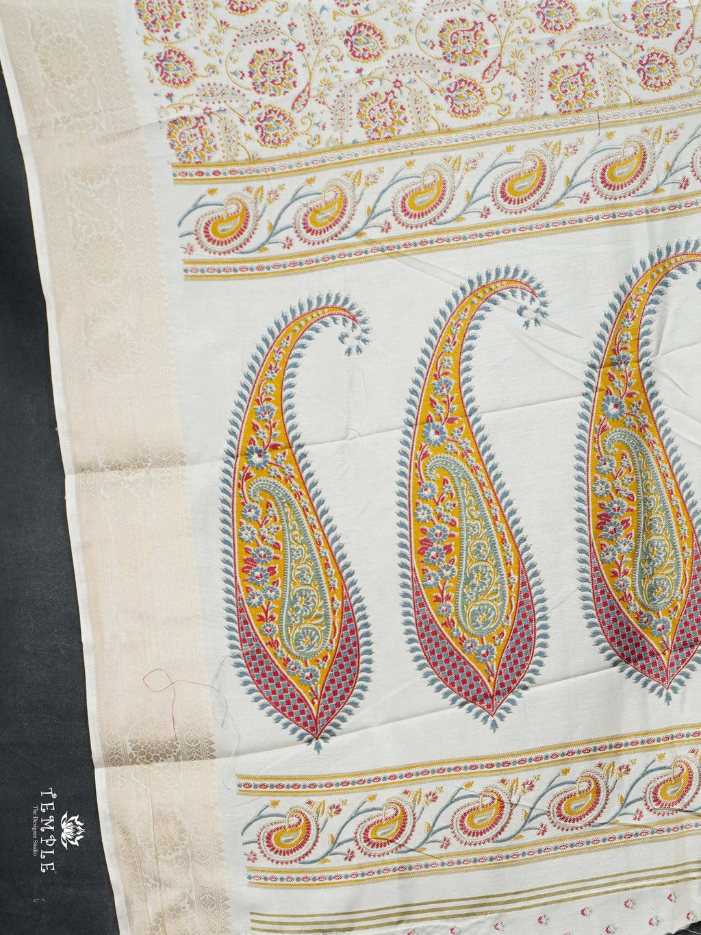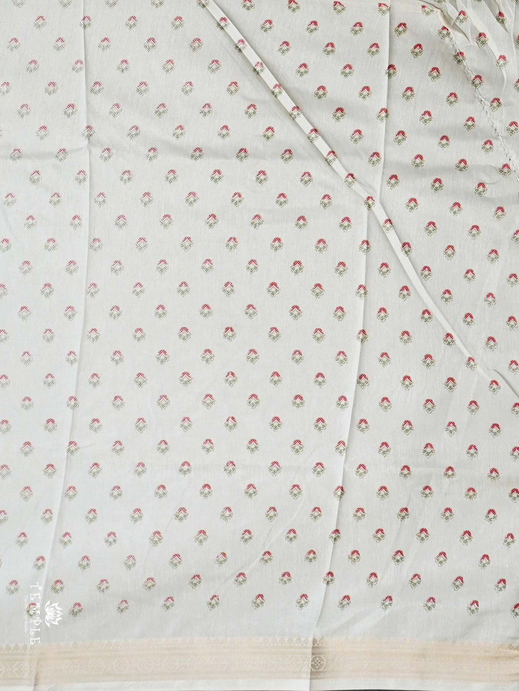 Work - Adorned with finely detailed paisley and floral butta motifs, woven in harmonious shades of red, antique gold, and soft beige, creating a regal all-over pattern.