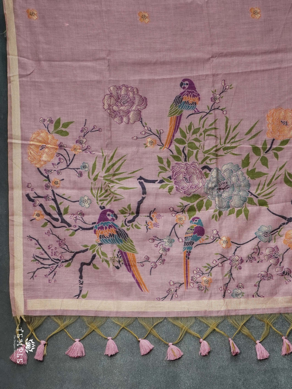 Work - Attractive Munga Cotton Saree. Adorned with Thread Woven floral patterns all over the Body. Attached with Contrast Blouse.