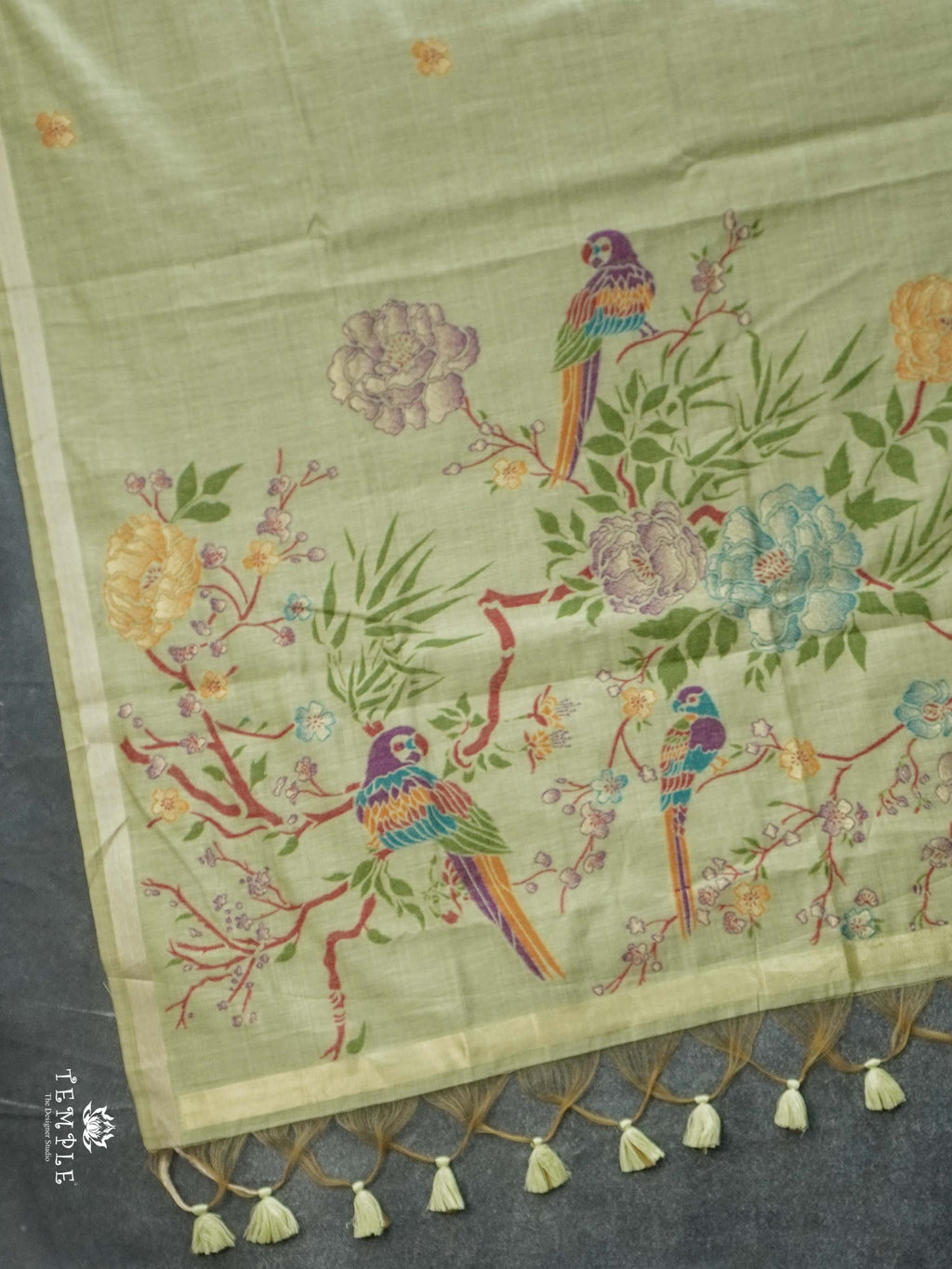 Work - Attractive Munga Cotton Saree. Adorned with Thread Woven floral patterns all over the Body. Attached with Contrast Blouse.