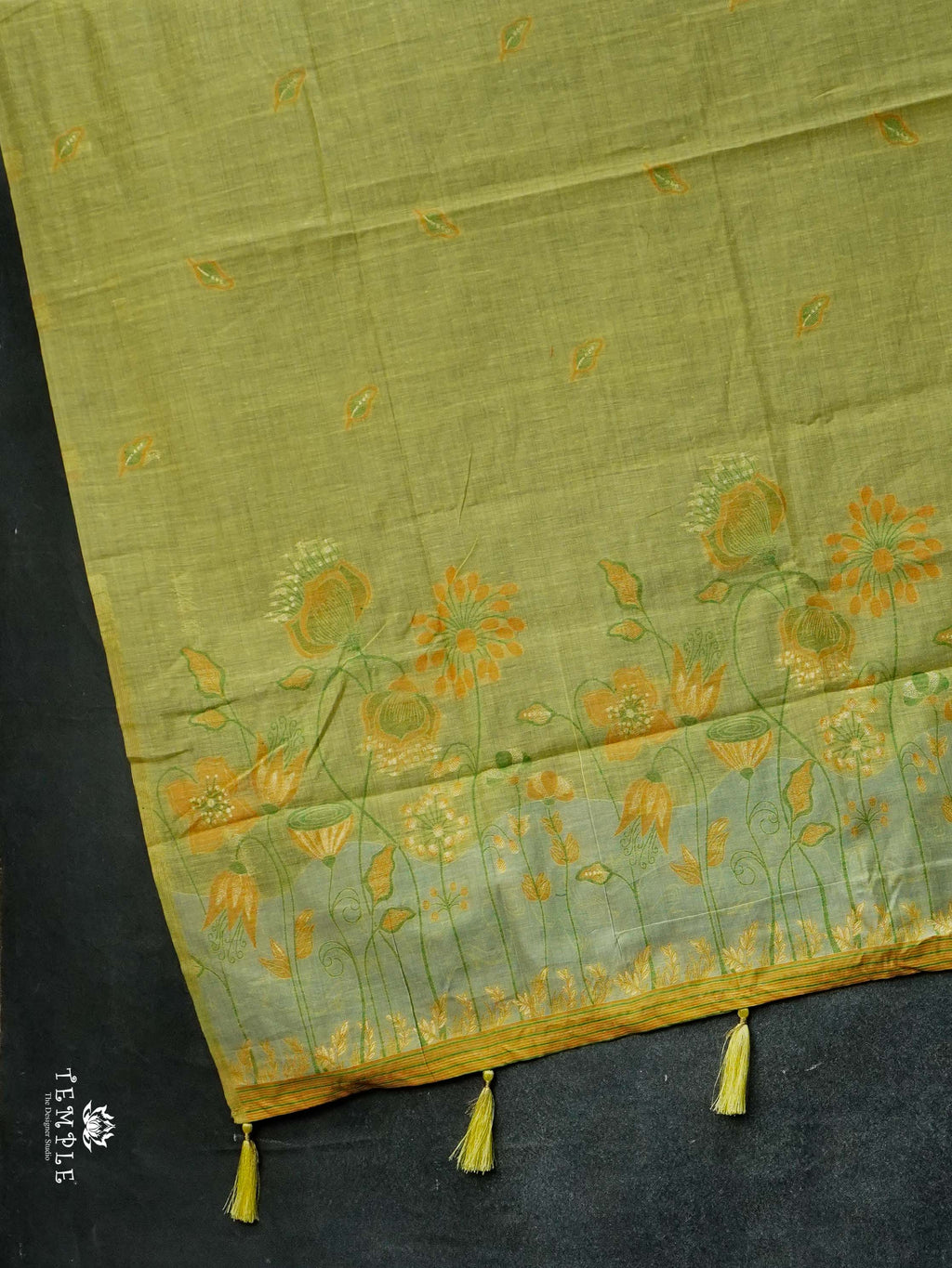 Work - Attractive Munga Cotton Saree. Adorned with Thread Woven floral Patterns all over the Body. Attached with Contrast Blouse.