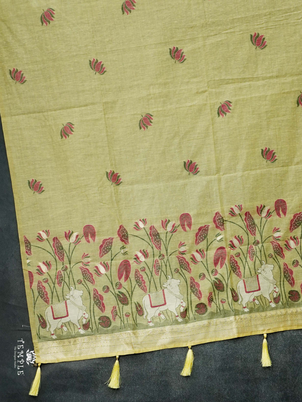 Work - Attractive Munga Cotton Saree. Adorned with Thread Woven floral Patterns all over the Body. Attached with Contrast Blouse.