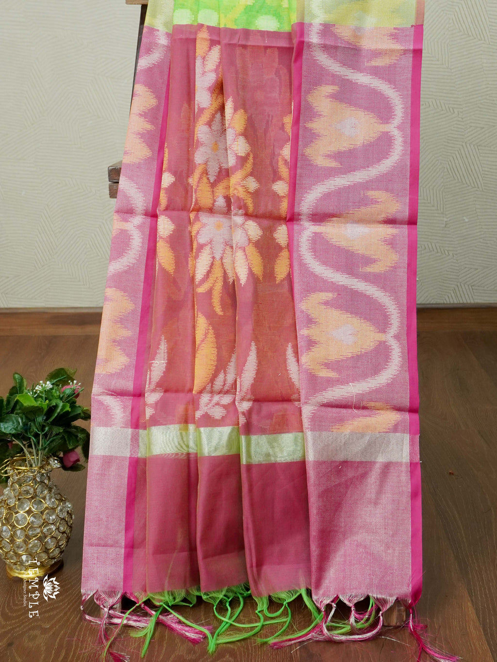 Work - Explore beautiful Collection of Pochampally Chanderi Cotton Saree with thread Woven Patterns and Contrast Border. Attached with Plain Blouse.