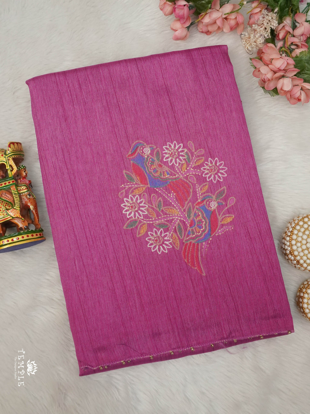 Work - This printed Tussar saree highlights the raw elegance of wild silk, adorned with artistic prints. Known for its breathable comfort and rich look, it is an ideal pick for sophisticated day wear.