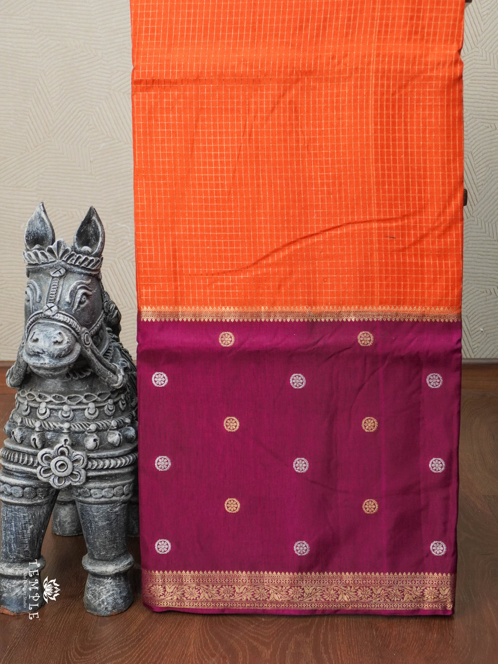 Work - Explore beautiful Collection of Semi Mysore Silk Saree with Checked Pattern and Zari woven motifs All over the Body. Attached with Plain Blouse.