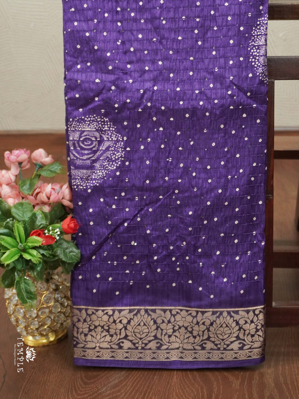 Work - Explore beautiful Collection of Semi Tussar Sarees with Beautiful Prints and Sequins work all over the body. Attached with sequins Blouse.