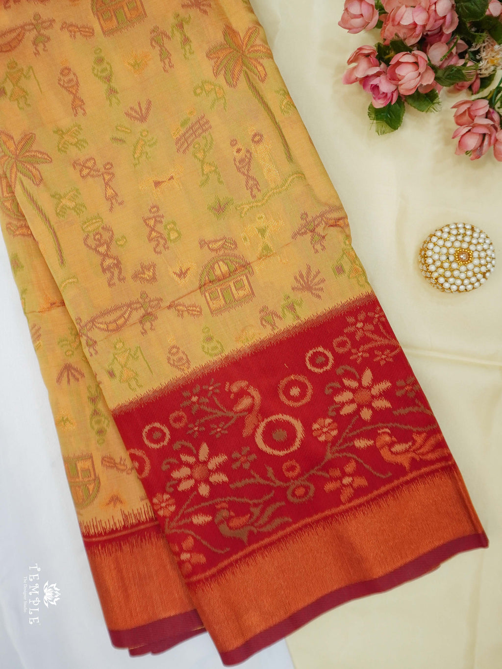 Work - Explore Beautiful Collection of Art Silk Sarees with Warli printed Design all over the body. Paired with printed Blouse.