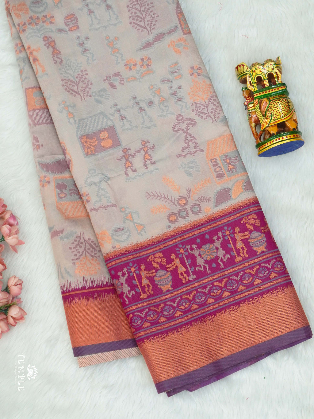 Work - Explore Beautiful Collection of Art Silk Sarees with Warli printed Design all over the body. Paired with printed Blouse.