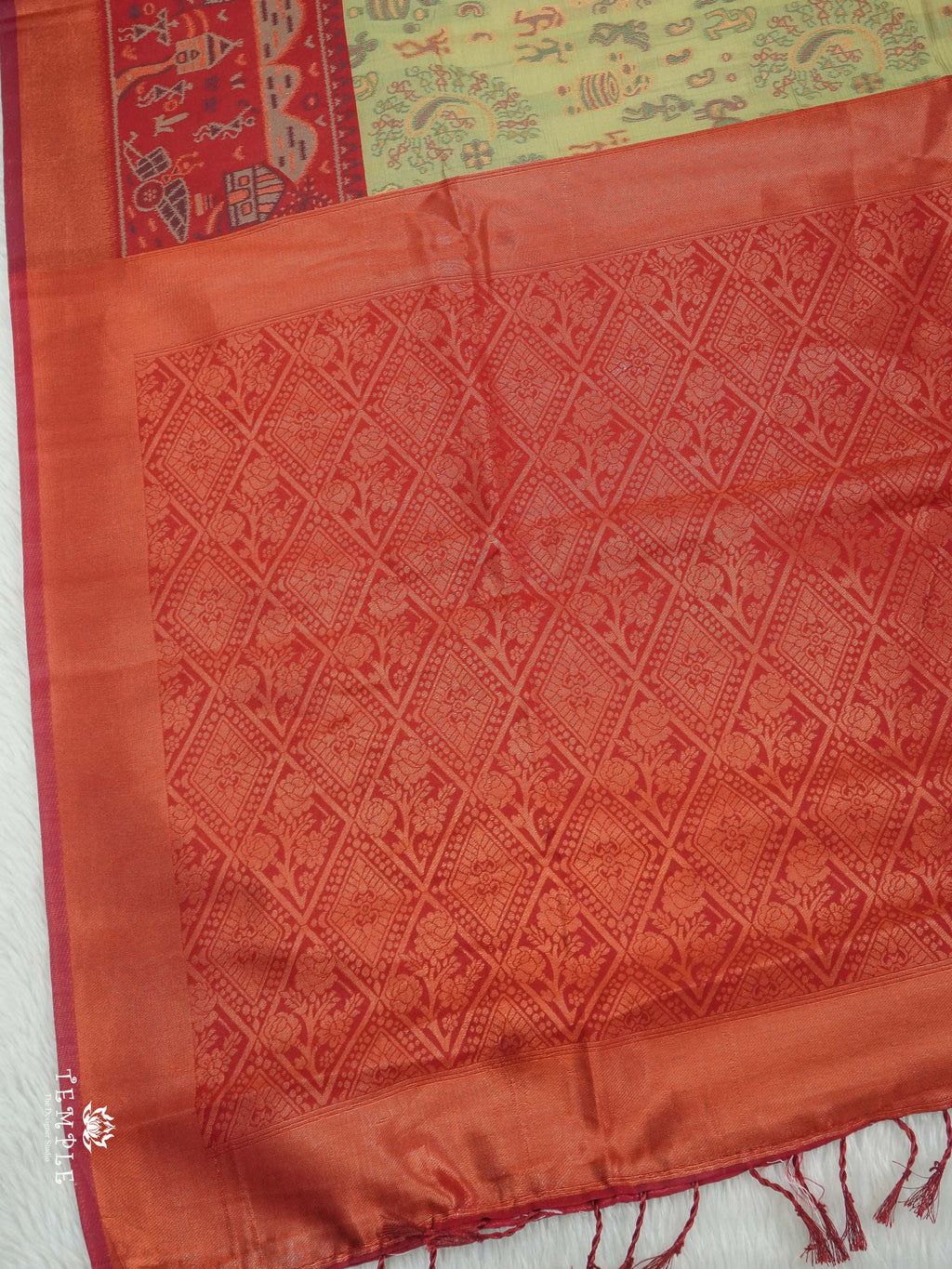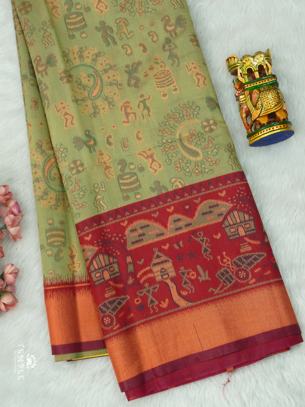 Work - Explore Beautiful Collection of Art Silk Sarees with Warli printed Design all over the body. Paired with printed Blouse.